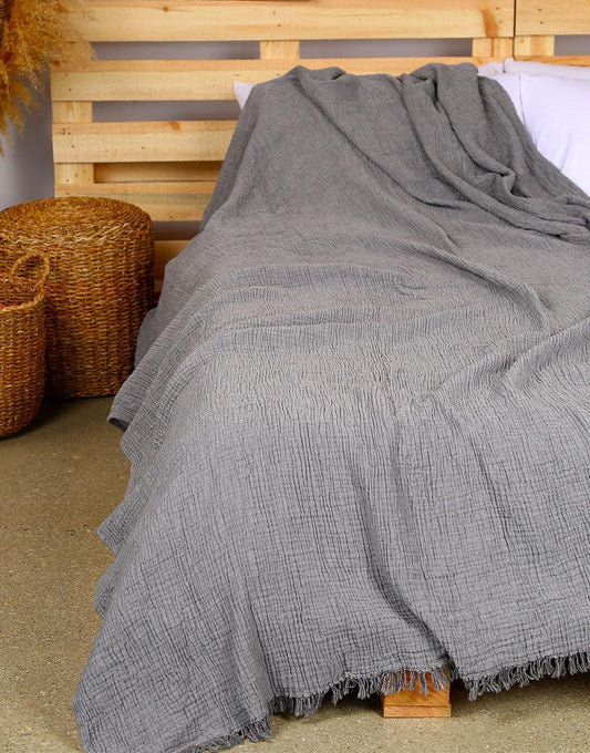 Cacala Plus Size Throw Blanket Muslin Series 100% Cotton Grey